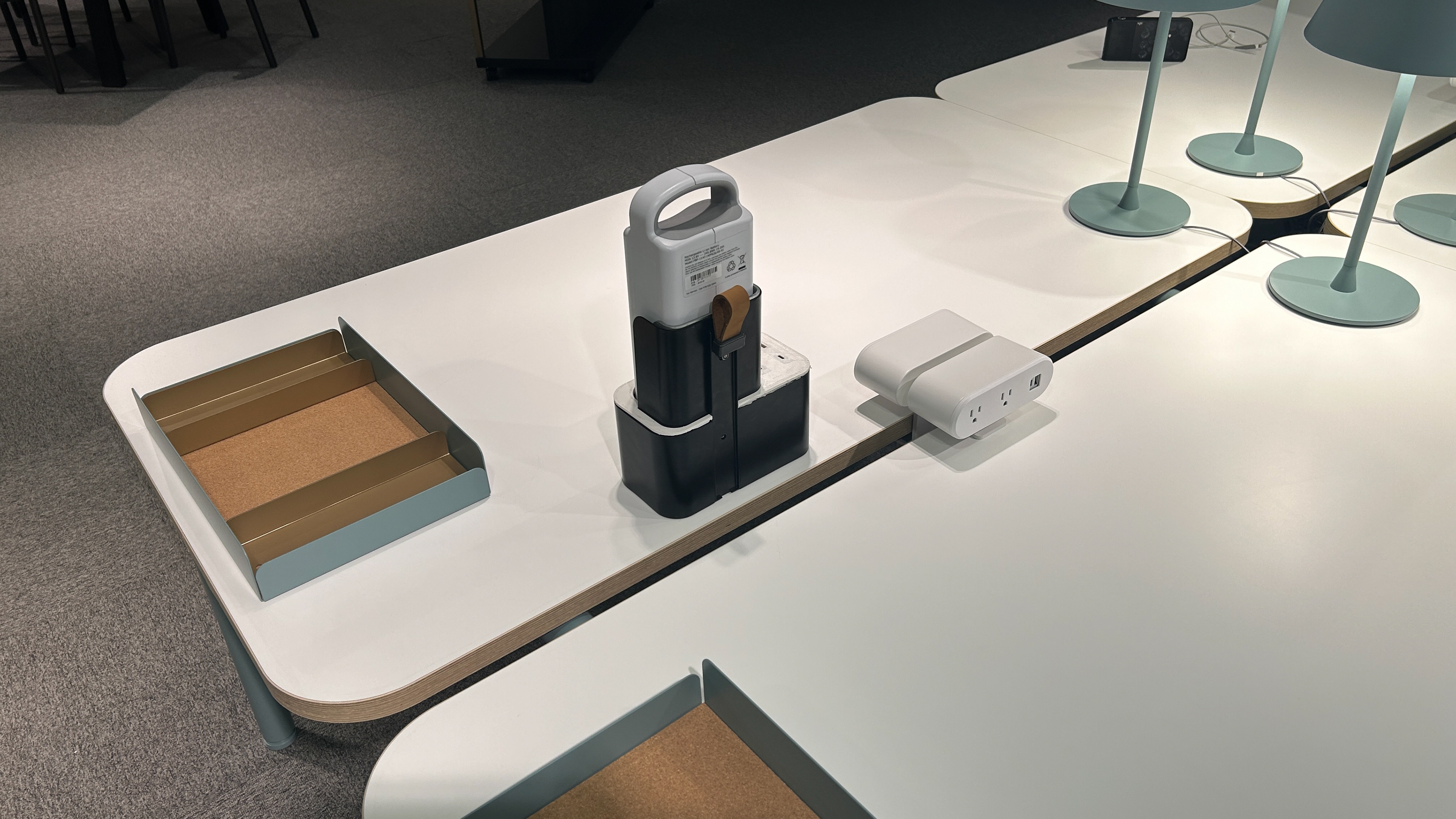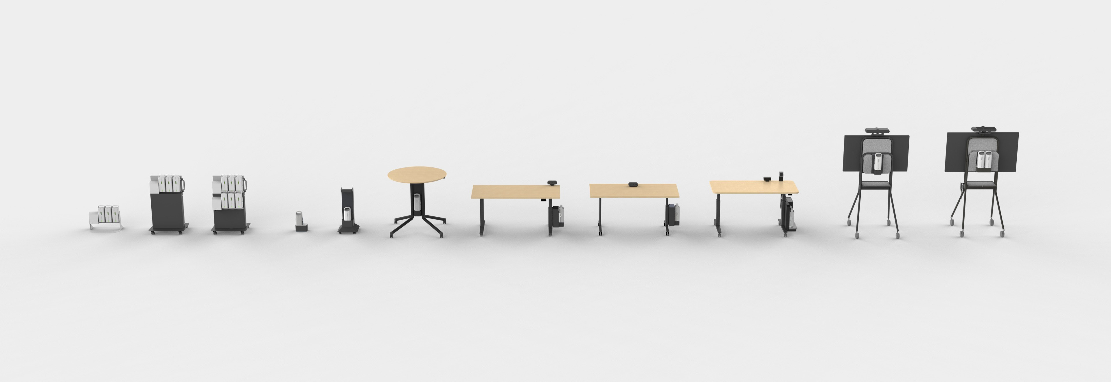 This is a furniture battery system integration that our group has developed for Teknion. The system is able to support any type of mobile working environment. It can turn office space into an agile space. The ability to plan spontaneously by both the end user and the interior designer makes this system a logical next step in office design. I designed this system while at Teknion’s Major Pursuits Department. The request originated from a customer who was looking to liberate themselves from their aging site, where core drilling for more power was no longer an option. The main convenience of this system is the ability to swap batteries for a fresh set on the fly instead of waiting to recharge the spent battery.